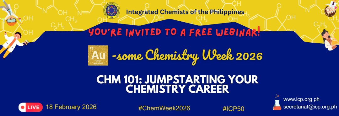 Chem 101: Jumpstarting Your Chemistry Career is a half-day webinar organized in celebration of Chemistry Week 2026. This session brings together experts from the industry, academe, and government sectors to share their professional journeys, insights, and practical advice for aspiring and early-career chemistry professionals.
